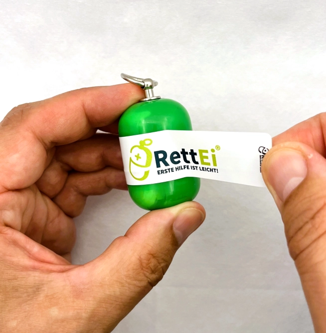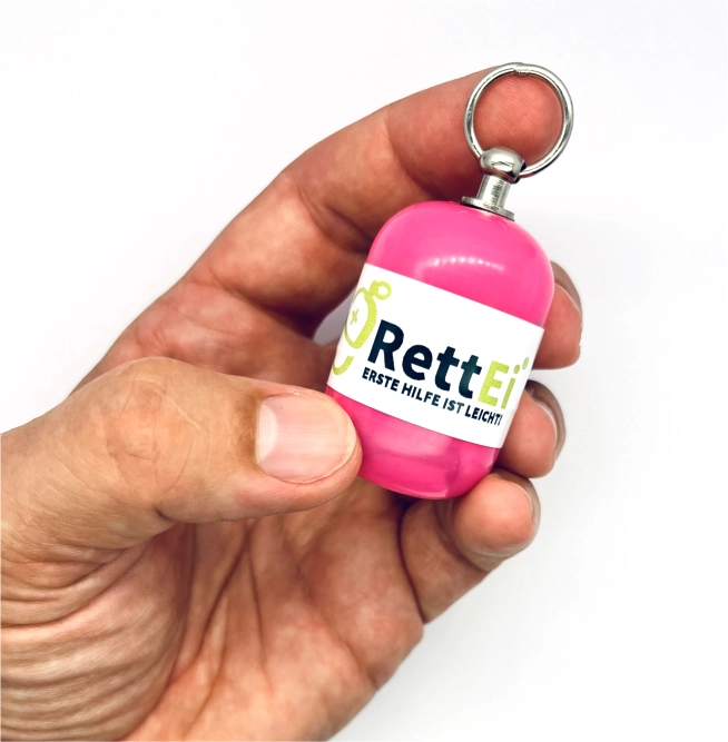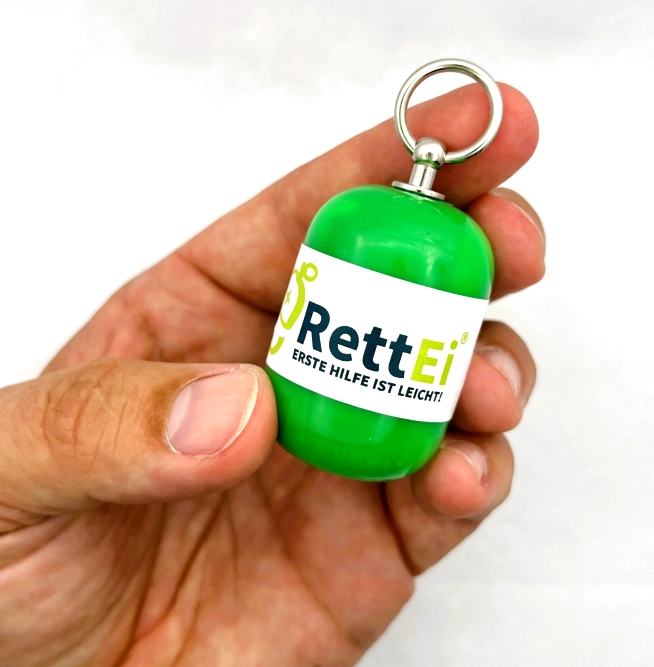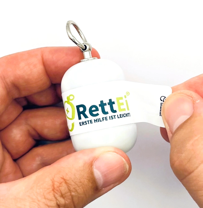 Das RettEi ist nicht nur ein innovatives Notfall-Set mit CPR-Maske im Schlüsselanhänger, sondern auch ein wirkungsvolles Marketinginstrument. Nutzen Sie diesen praktischen Artikel als Werbegeschenk, Merchandising-Produkt oder Werbemittel, um Ihre Marke mit einem sinnvollen und nützlichen Produkt zu verknüpfen. Besonders für Unternehmen, Organisationen, Vereine oder öffentliche Einrichtungen bietet sich die Möglichkeit, das RettEi-Logo individuell mit Ihrem Logo oder Slogan zu bedrucken.