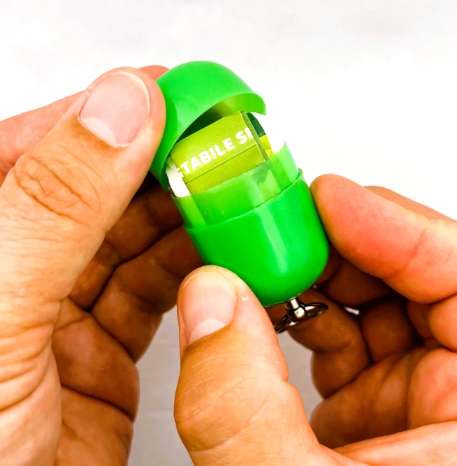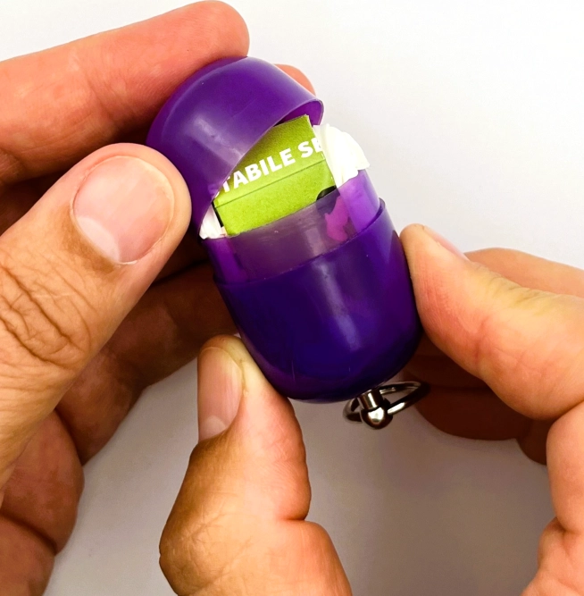 Das gesamte Set ist in einer strapazierfähigen, wasserdichten Mini-Tasche untergebracht, die nicht größer ist als eine herkömmliche Notfallkapsel. Der robuste Schlüsselring ermöglicht eine einfache Befestigung am Schlüsselbund, an der Tasche oder am Rucksack. So haben Sie Ihre persönliche Notfallhilfe jederzeit griffbereit – unauffällig, aber bereit für den Ernstfall.